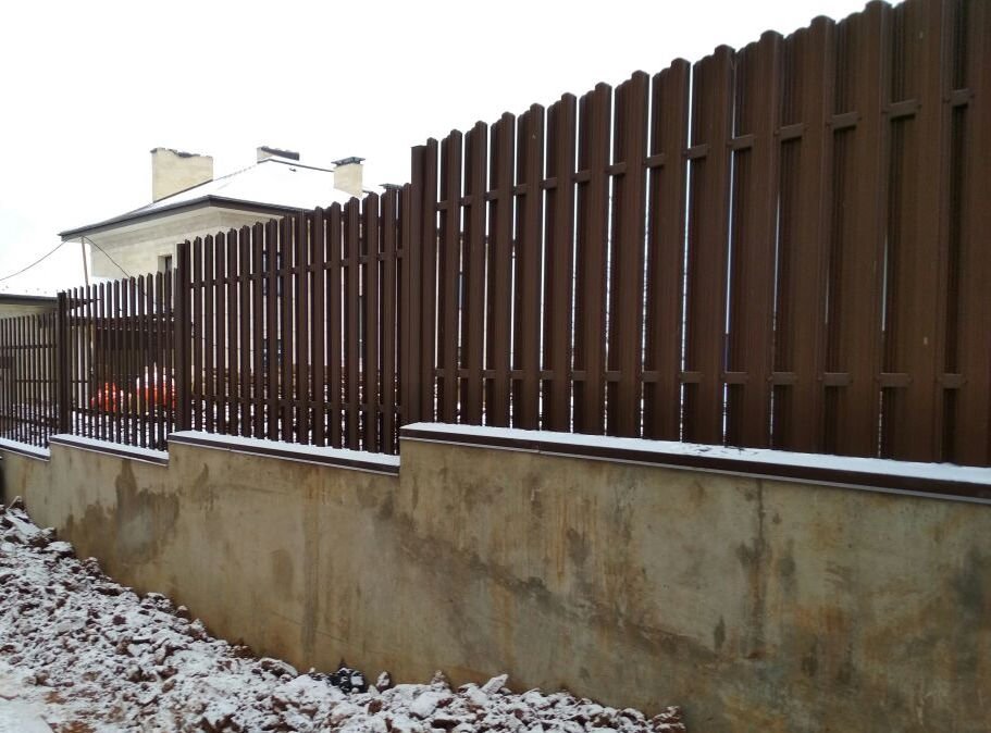 Конструкции изготавливаются из оцинкованной стали или алюминия и покрываются полимерным либо декоративным слоем, поэтому не ржавеют и не требуют регулярной покраски. За счёт секционной сборки можно подобрать высоту (от 1,5 до 2 м), шаг и цвет, а также выполнить калитку и ворота в одном стиле. Это практичное решение, когда нужна приватность, но не хочется ставить глухой «забор-стену».