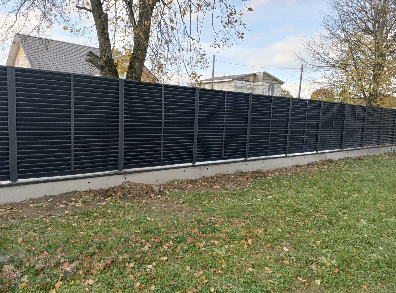 Забор жалюзи серый графит 1.8 метра на ленточном фундаменте