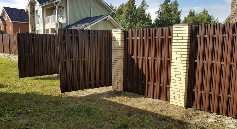 - декоративные покрытия под дерево / Printech — если забор стоит на фасаде и должен выглядеть «дороже».