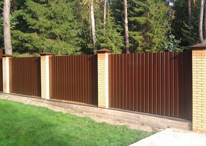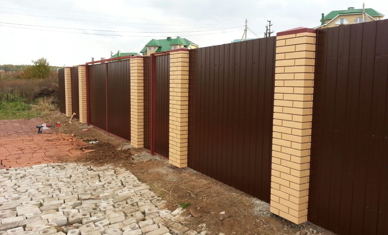 Забор жалюзи с кирпичными столбами на ленточном фундаменте (2 метра)